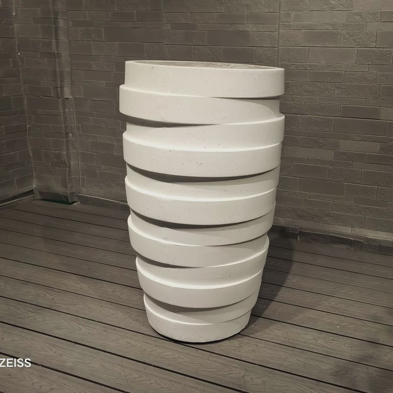 Die Oberfläche dieses Pflanzers ist handgeschnitzt, was jedem Stück einen Hauch von Handwerkskunst und Einzigartigkeit verleiht.und leichtes Design machen es für eine Vielzahl von Anwendungen geeignet.